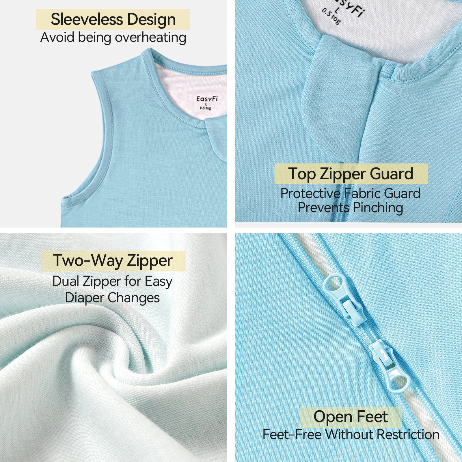 SAFETY ABOVE ALL - Baby's sleep safety is our first priority. Sleeveless to reduce the risk of overheating. Zipper covering for extra safety. Thermo regulating for perfect temperature.